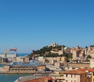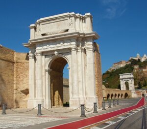 Ancona, la città dorica, disposta ad anfiteatro su un promontorio che si eleva specchiandosi sulle acque del suo ampio porto naturale, fu fondata nel 387 avanti Cristo dai Greci di stirpe dorica provenienti da Siracusa, sfuggiti alla tirannide di Dionisio. Sulla sommità del colle a picco sul mare Adriatico sorse l'acropoli con il tempio dedicato ad Afrodite, laddove anticamente si insediò un primitivo villaggio piceno.
