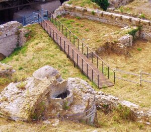 "In Piceno urbs Græca est Ancona, a Syracusanis condita, qui Dionysii fugerant tyrannidem. Sita est in promontorio, quod suo versus septentriones reflexu portum includit: vino et tritico abundat." (STRABONIS GEOGRAPHICA)