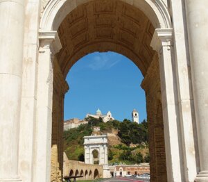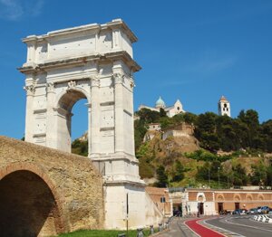 Con l'avvento dei Romani nel Piceno, anche la Dorica nel 113 a.C. dovette arrendersi alle forze del supremo imperatore Traiano che ne ampliò il porto per dar vita ad un importante scalo commerciale sul mare con il guardo volto ad Oriente. «Quiv'era storïata l'alta gloria / del roman principato il cui valore / mosse Gregorio a la sua gran vittoria; i' dico di Traiano imperadore; ...» - scrisse Dante nel X° canto del Purgatorio, circa l'Optimus Princeps, valente statista ricco di qualità morali, sotto il cui dominio l'Impero romano raggiunse la sua massima estensione territoriale, ben 6,5 milioni di chilometri quadrati.